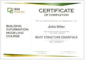 Всеки успешно завършил курса, получава сертификат за завършен курс от БИМ Уни и сертификат по образец за Authorized Training Center от Autodesk по e-mail след гласуване в анкета на Autodesk.