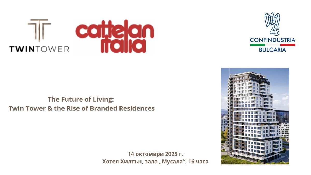 Конфиндустрия България Ви кани на The Future of Living: Twin Tower & the Rise of Branded Residences на 14 октомври 2025 г. от 16:00 часа в Хотел Хилтън, зала „Мусала“. Събитието поставя фокус върху Twin Tower – първия branded residence проект в България, реализиран съвместно...