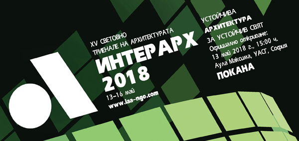 МЕЖДУНАРОДНА АКАДЕМИЯ НА АРХИТЕКТУРАТА СЪЮЗ НА АРХИТЕКТИТЕ В БЪЛГАРИЯ УНИВЕРСИТЕТ ПО АРХИТЕКТУРА, СТРОИТЕЛСТВО И ГЕОДЕЗИЯ (УАСГ), СОФИЯ ОРГАНИЗИРАТ XV СВЕТОВНО ТРИЕНАЛЕ НА АРХИТЕКТУРАТА „ИНТЕРАРХ 2018“ Устойчива архитектура...