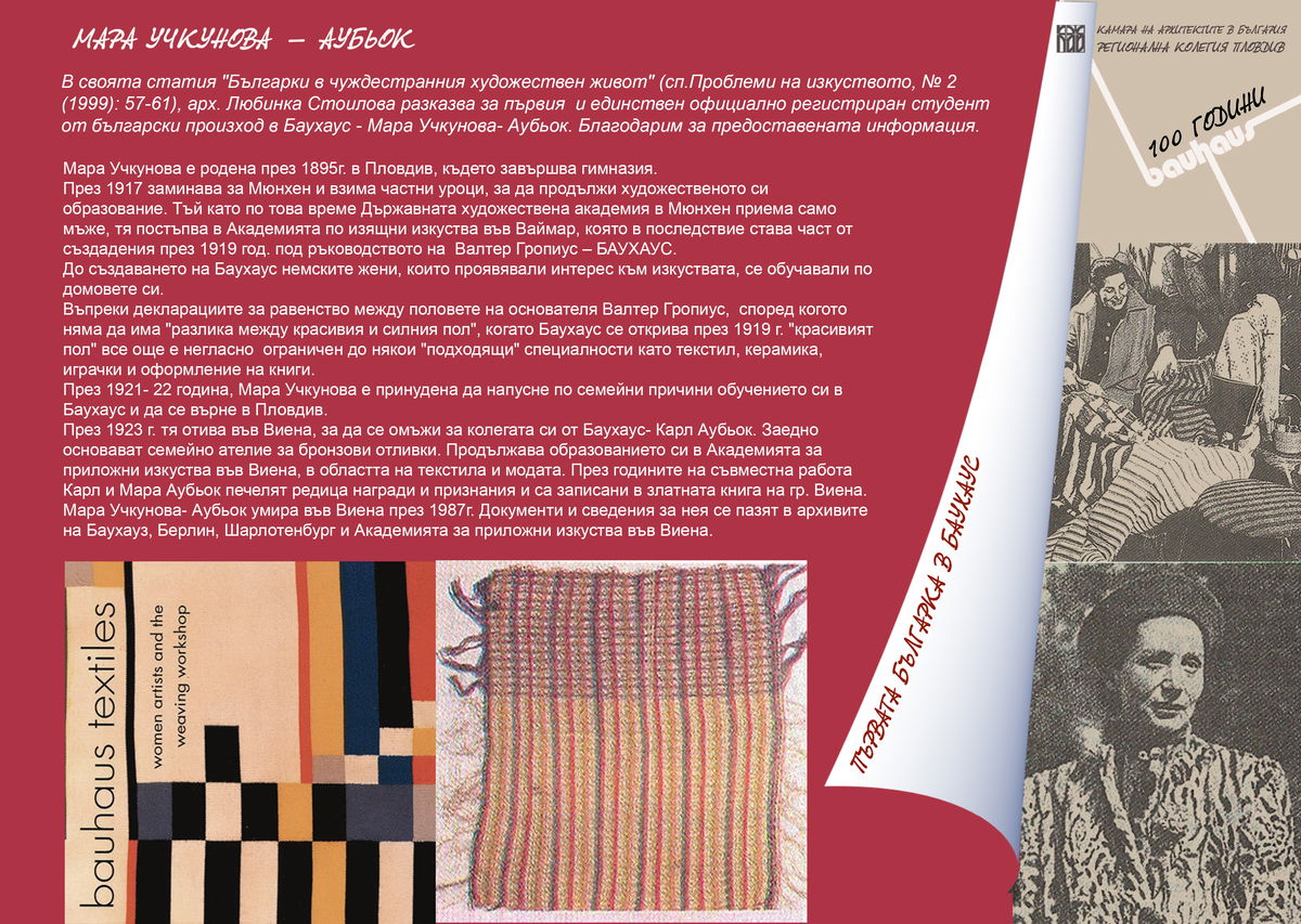 За първия и единствен официално регистриран студент от български произход в Баухаус - Мара Учкунова- Аубьок . КАБ РК Пловдив [gallery link="file" size="full" ids="60233"] ...