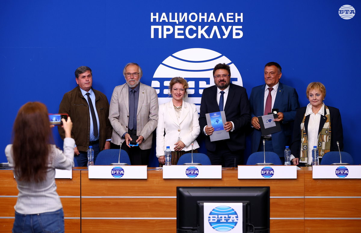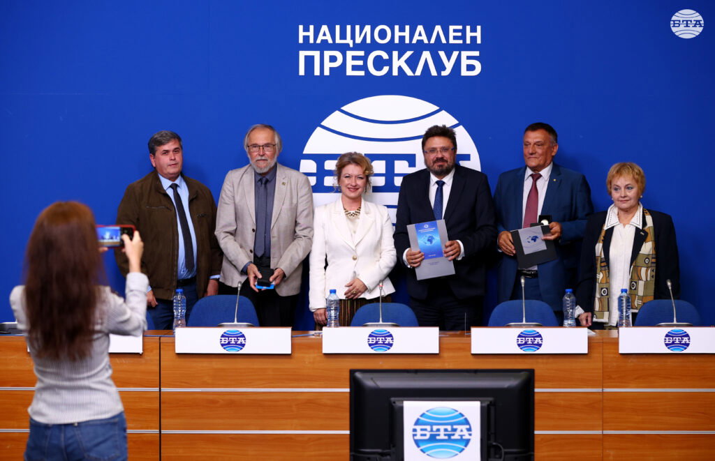 - София (7 октомври 2024) В Националния пресклуб на БТА – София се провежда пресконференция по повод на Световния ден на архитектурата. В рамките на събитието се подписва договор за медийно партньорство между Българската телеграфна агенция (БТА), Съюза на архитектите в България (САБ) и Камарата на архитектите в България (КАБ). На снимката (от ляво надясно): арх. Петър Мурджев, председателят на УС на Камарата на архитектите в България (КАБ) арх. Владимир Милков, арх. Десислава Димитрова, генералният директор на БТА Кирил Вълчев, председателят на УС на Съюза на архитектите в България арх. Петър Диков и арх. Истелианна Атанасова. Снимка: Минко Чернев/БТА (БТ)