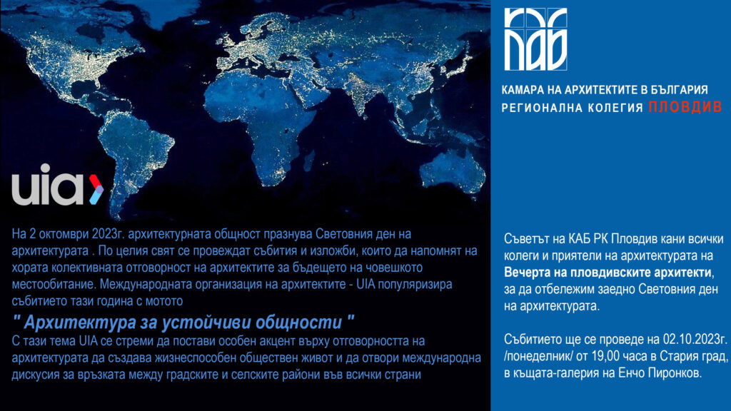 28 сеп. Вечер на пловдивските архитекти и изложба за Световния ден на архитектурата