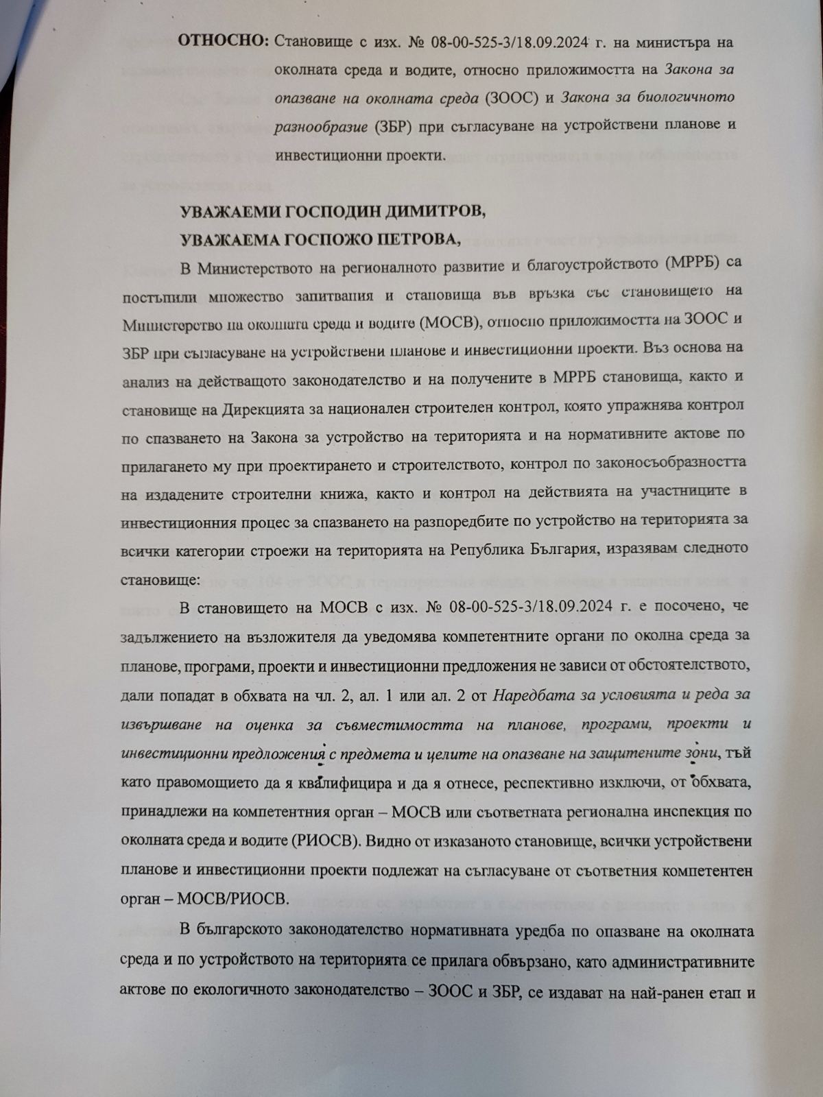 Официални писма и становища