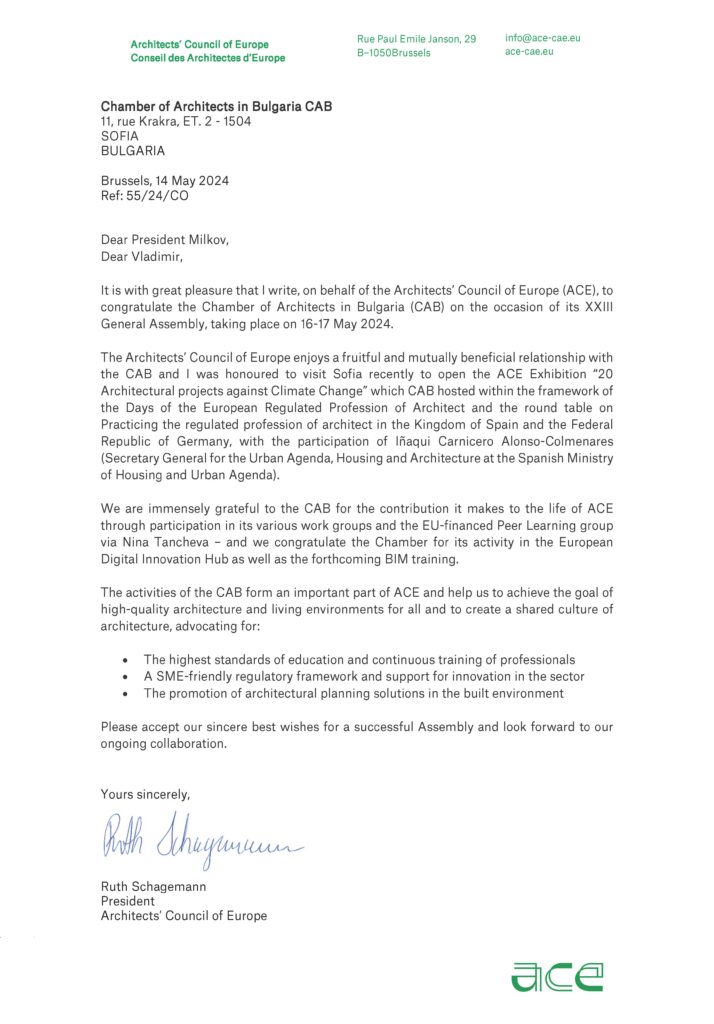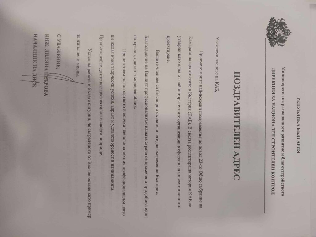 Реформиране на законодателството в архитектурно-строителния сектор, стартиране на продължаващо обучение, дигитализация на КАБ, създаване на комисия „антидъмпинг“, организиране на Венецианско архитектурно биенале 2025. Това са част от приоритетите в дейността на Камарата на архитектите в България (КАБ) през следващата година, които бяха представени на 23-то Общо събрание на професионалната организация. Над 400 делегати от цялата страна участваха в най-големия форум на архитектурната колегия за 2024 г., който се проведе на 16 и 17 май в Поморие.
