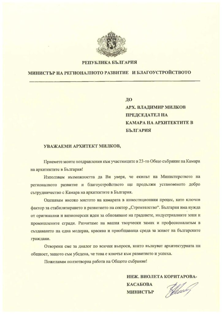 - Текущи становища по изменения на законови и подзаконови актове, архитектурни конкурси, обществени поръчки.