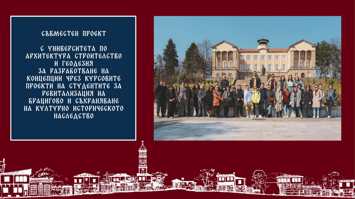 В дискусиония панел посветен на недвижимото културно наследство бе представена „Концепция за устойчиво развитие и управление на културно-историческото наследство на територията на Община Брацигово“ разработена от арх.Георги Цапков, арх.Младен Китов и арх.Десислава Димитрова в рамките на Архитектурния форум организиран през септември 2021г. от КАБ РК София Област “Брацигово – Каменният поток на времето”. Поради огромният успех и интерес сред професионалистите към форума, тази година отново от 9-ти до 11-ти септември Брацигово ще бъде домакин на второ издание включващо лекции и уъркшопи.