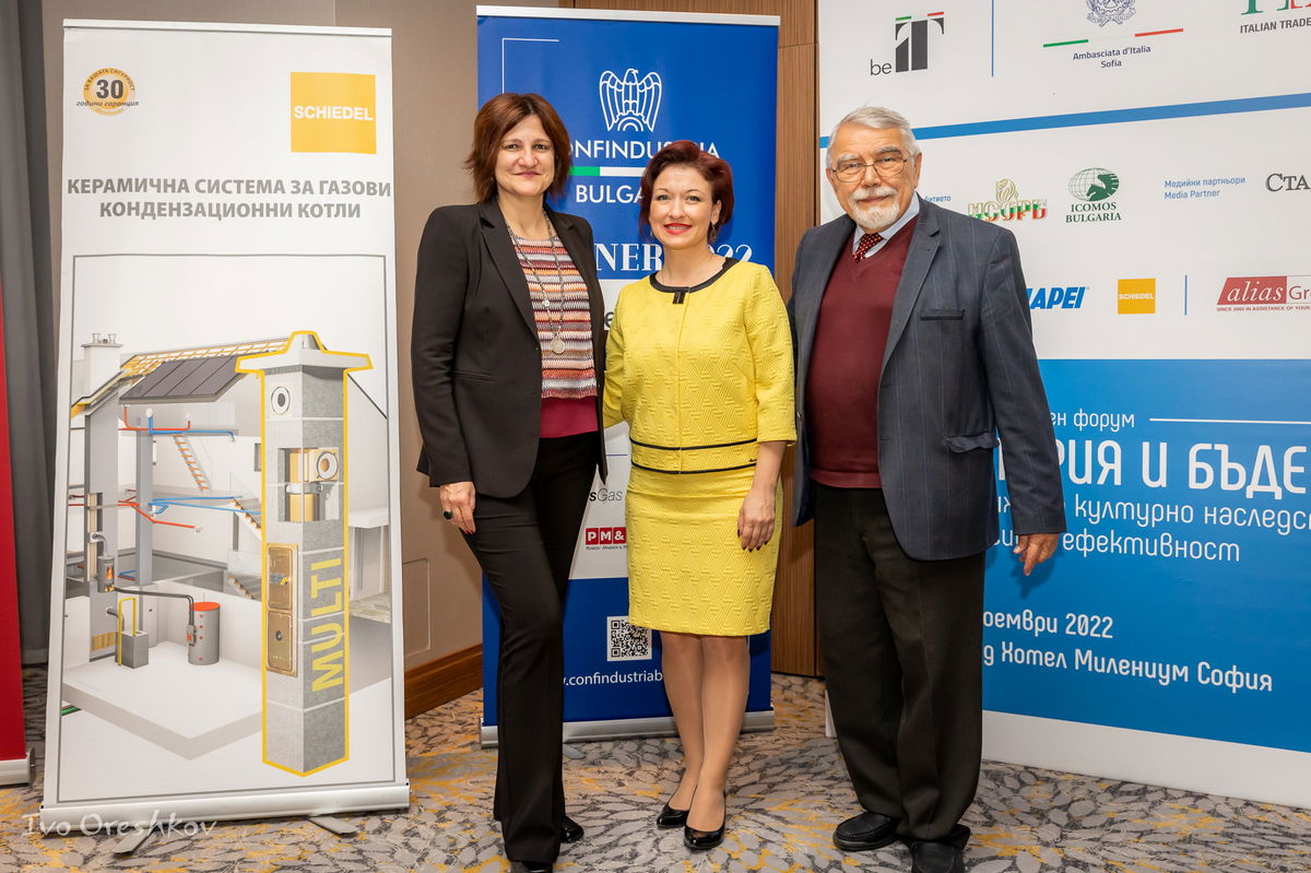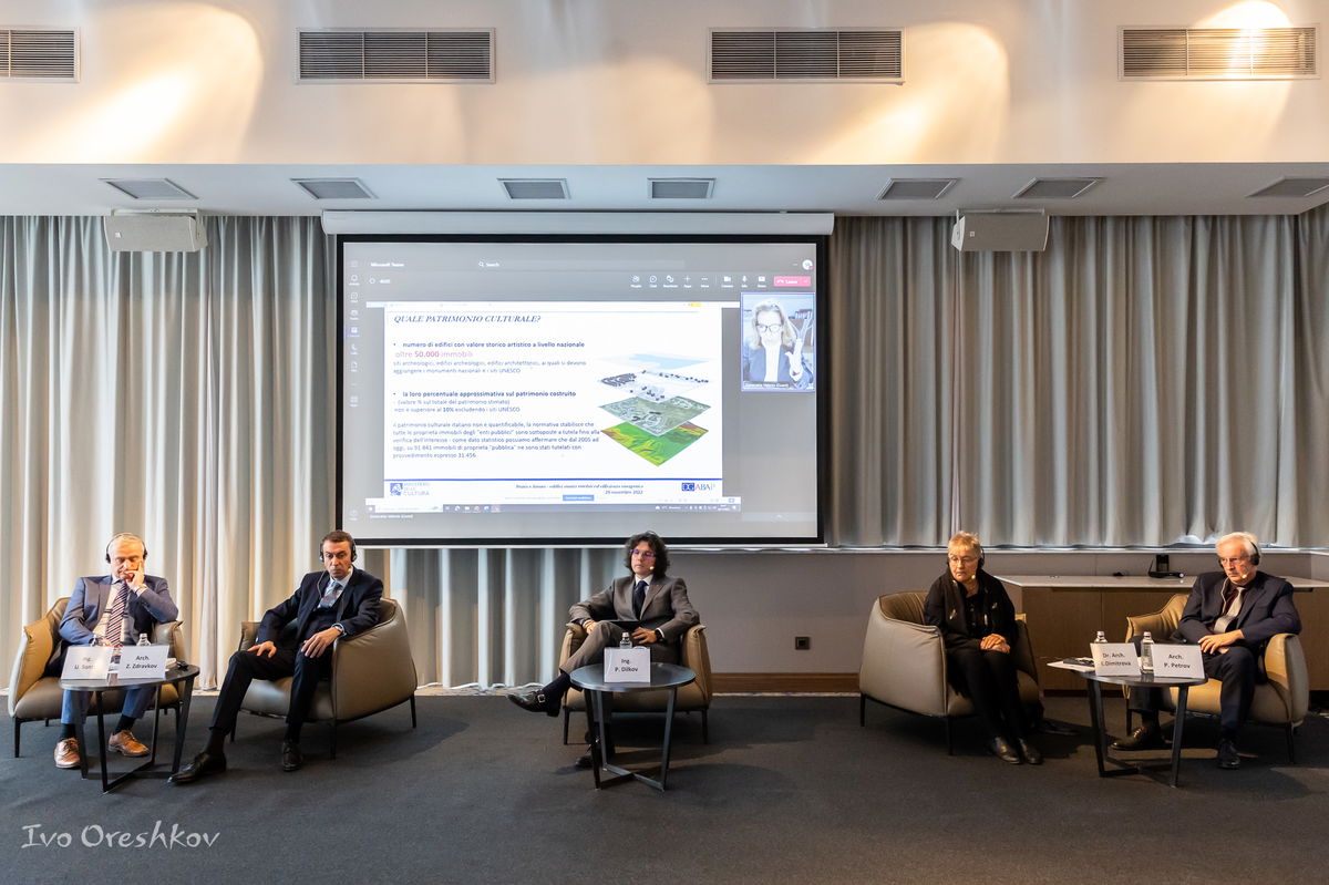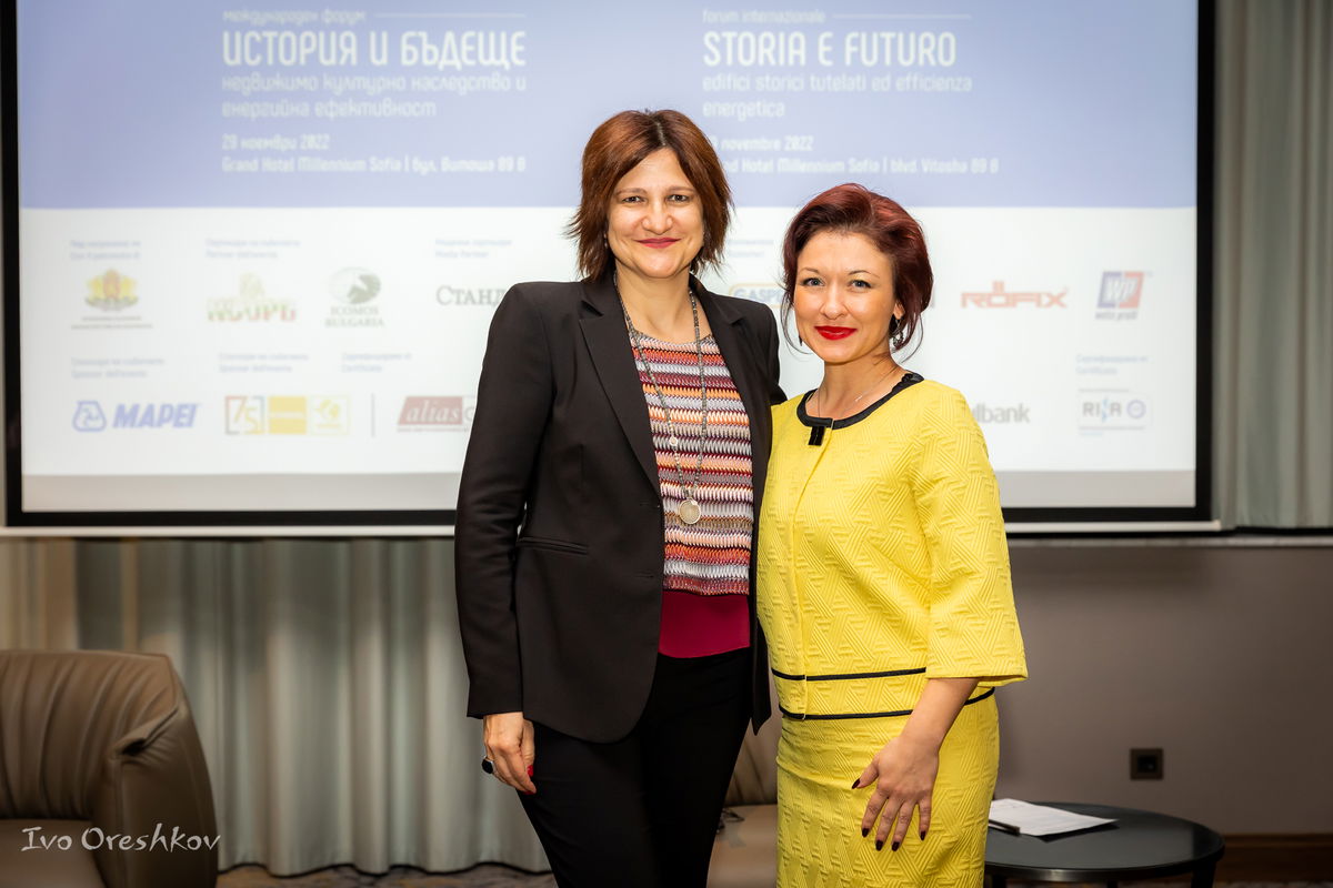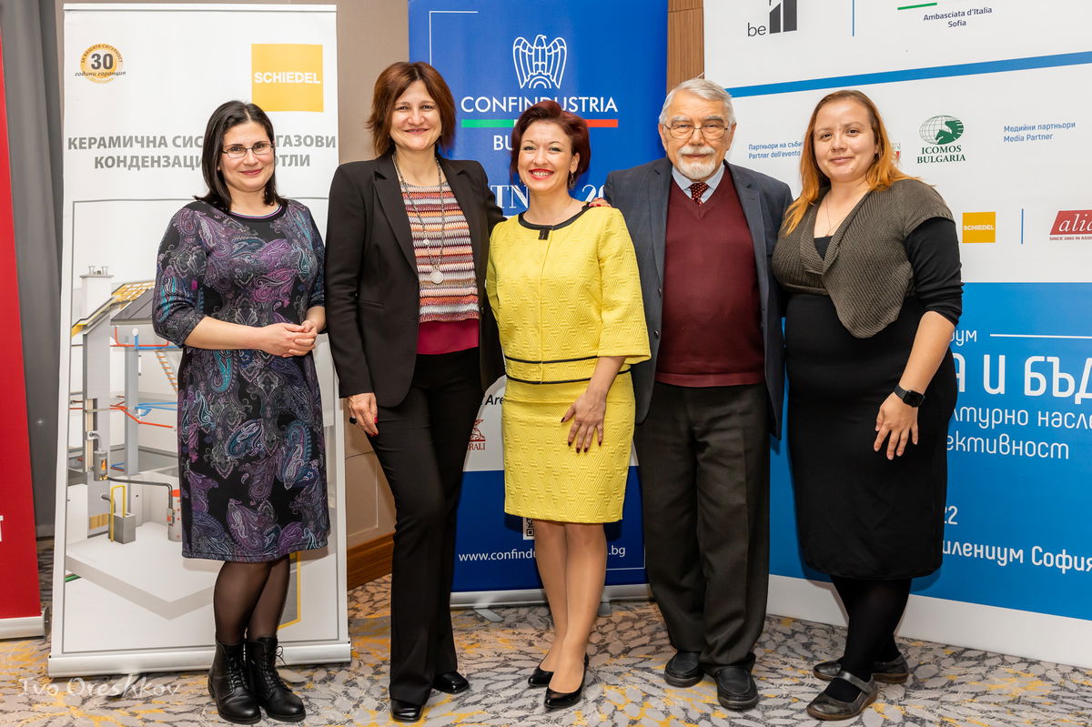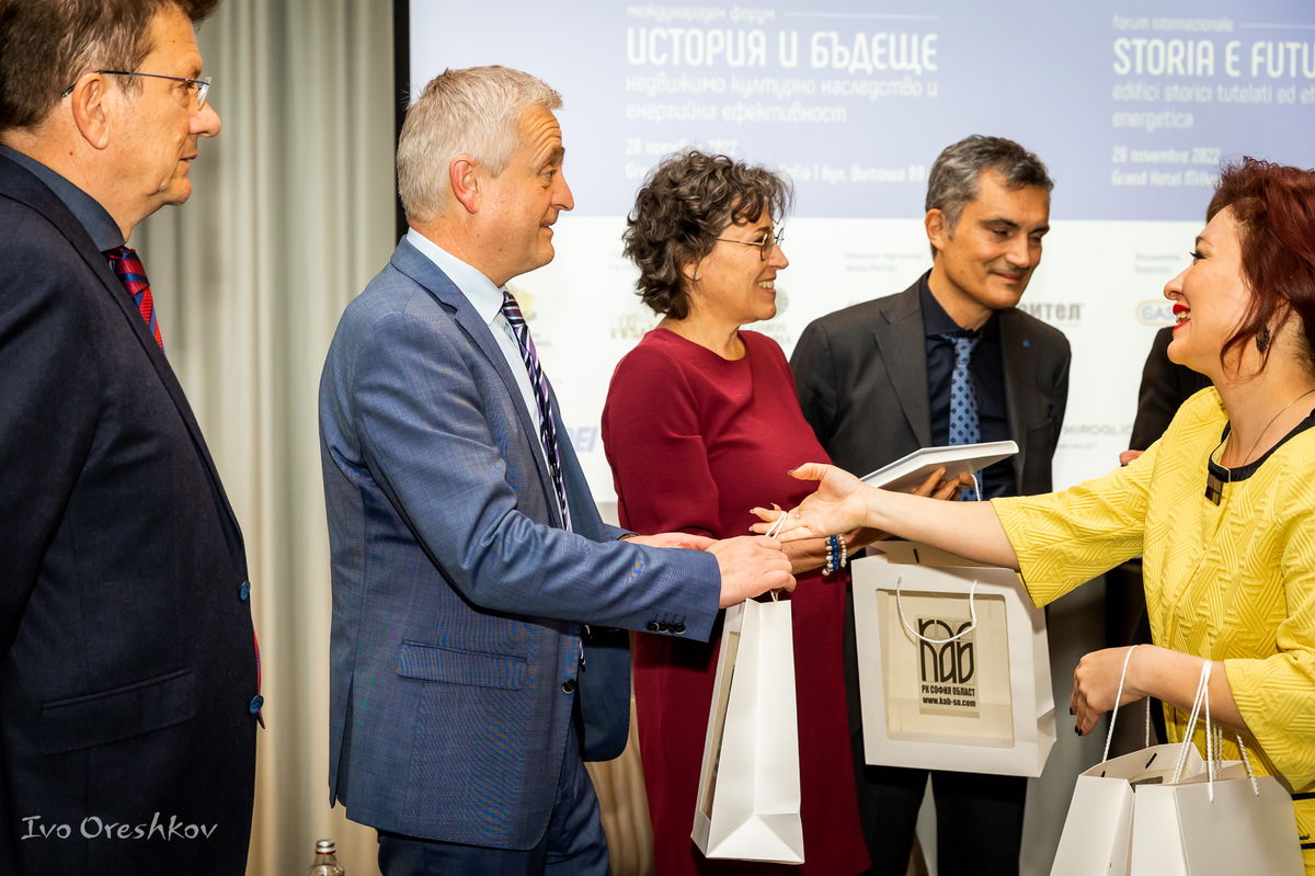 На 29 неомври в Гранд Милениум център в София бе проведен международният форум “ИСТОРИЯ И БЪДЕЩЕ” – посветен на недвижимото културно наследство и енергийната ефективност, под патронажа на Министерство на културата на България и с участие на Министерство на културата на Италия. Той бе организиран от Посолството на Италия в България, ИЧЕ – Агенция София, Конфиндустрия България в партньорство с Агенция CasaClima, Камара на Архитектите в България Регионална Колегия София Област и Камара на строителите в България. Събитието бе открито от Н.Пр. Джузепина Дзара, Посланик на Италия в София и доц. д-р Пламен Славов, заместник министър на културата, като продължи с встъпителните изказвания на Киара Петро, Директор на ИТА – Агенция в София, арх. Здравко Здравков, Главен архитект на Столична община, Роберто Санторели, Председател на Конфиндустрия България /Сдружение на италианското предприемачество в България/, арх. Константин Пеев, зам. председател на Камара на архитектите в България, Валентин Николов, изпълнителен директор на Камара на строителите в България.