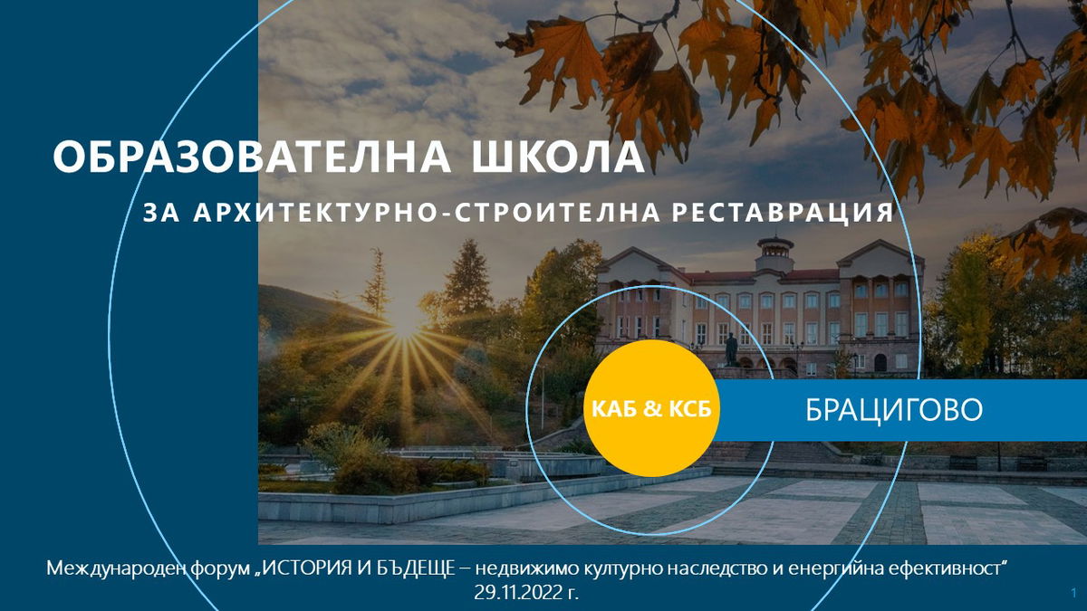 Като важна посока за съхраняване и развитие на културно историческото наследство, бе представен от името на Камара на архитектите и Камара на строителите в България, в лицето на арх. Десислава Димитрова /КАБ/ и Мартина Кръстева /КСБ/, стратегическият проект за създаване на Образователен център за архитектурно строителна реставрация в град Брацигово.