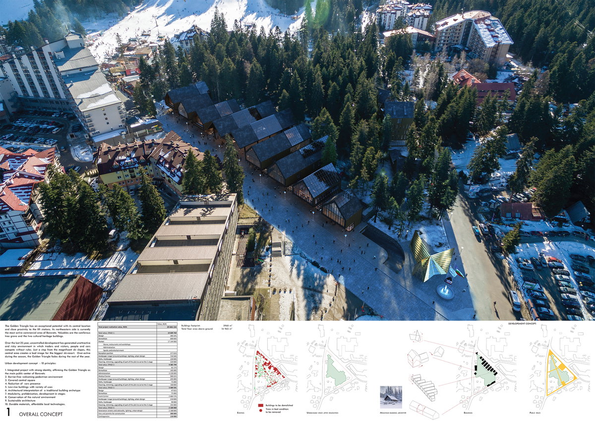 По повод отбелязването на 120 години от основаването на най-стария български планински курорт Боровец, Община Самоков заедно с партньорите си – Камара на архитектите в България, Съюз на Архитектите в България, Съюз на урбаниститие в България и Урбанистас, проведоха международен архитектурен конкурс за територията “Златният триъгълник” в курорта.