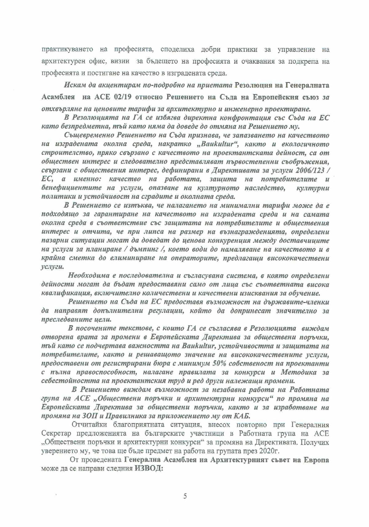 31 ян. Pезолюция на Генералната Асамблея на ACE 02/19 относно Решението на Съда на Европейския съюз (ECJ) по процедурата за нарушение на германските ценови тарифи – HOAI (Официални тарифи за архитектурни и инженерни услуги) – от 4 юли 2019 г. P (C377 / 17)