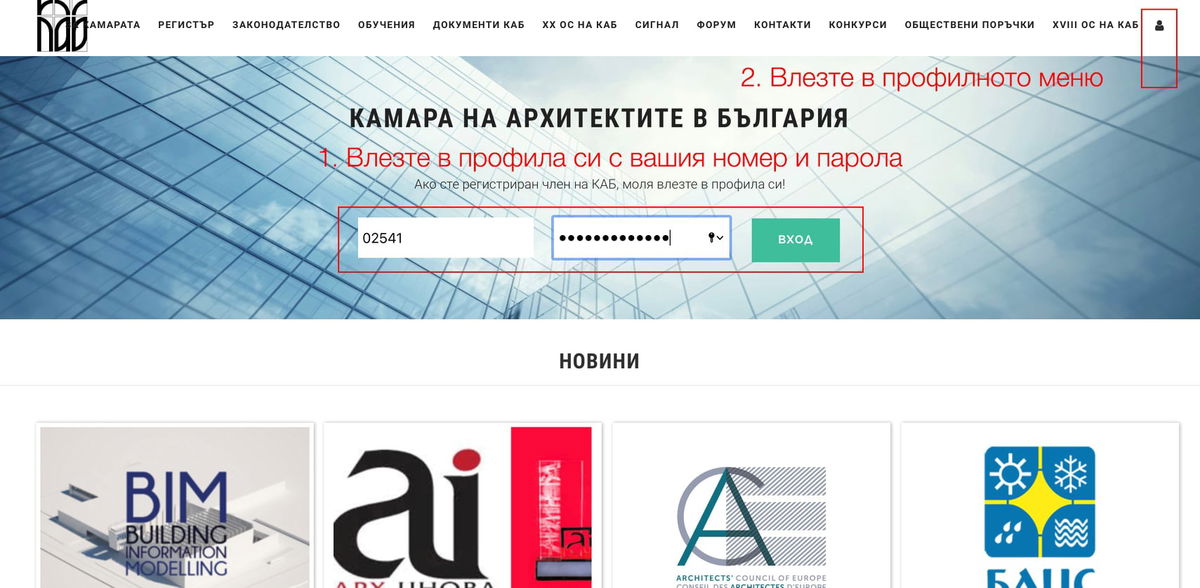 Напомняме Ви, че всеки член на КАБ има създаден от Комисия по регистър профил в сайта и няма нужда Вие да правите някаква допълнителна регистрация.