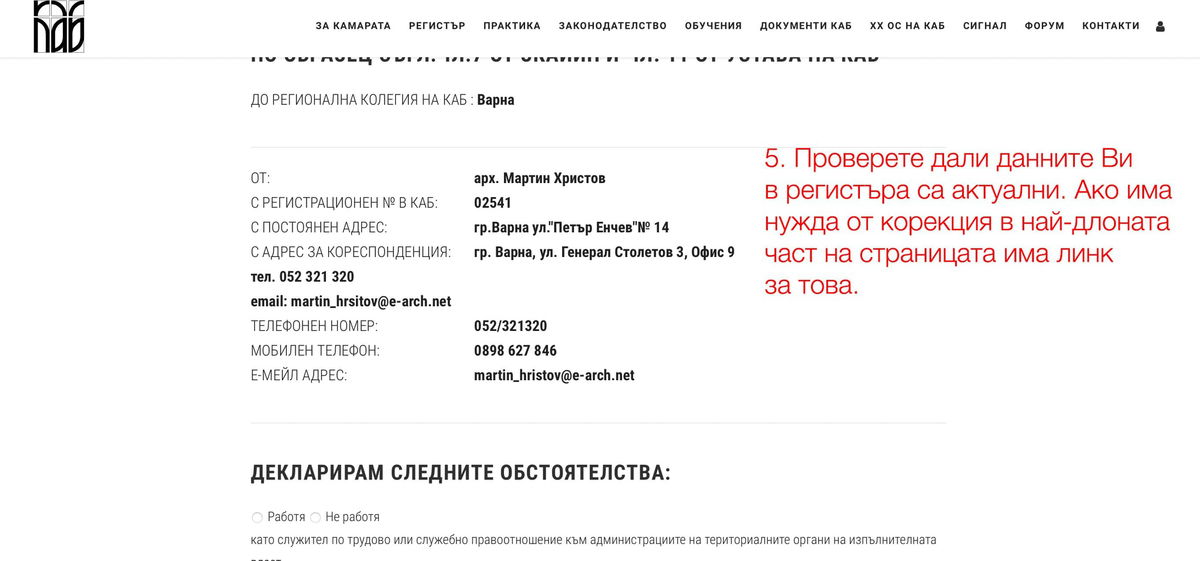 5. Проверете дали данните Ви в регистъра са актуални. При нужда от корекция, в най-долната част на страницата има линк за това.