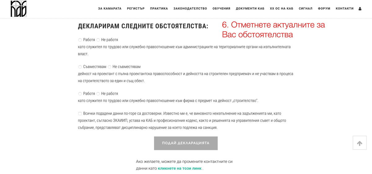 6. Отбележете на определените места актуалните за Вас обстоятелства.