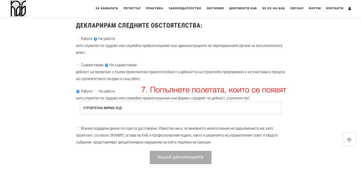 7. При необходимост попълнете данни в полетата, които се появяват.