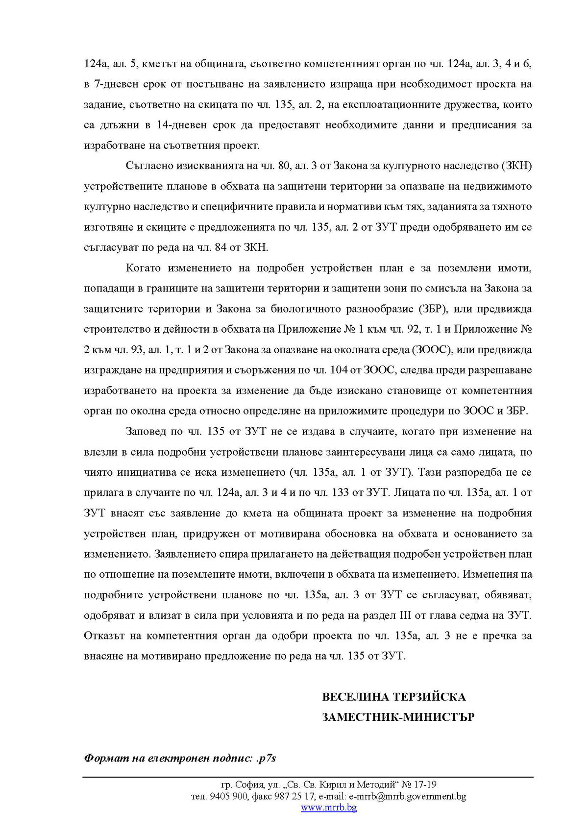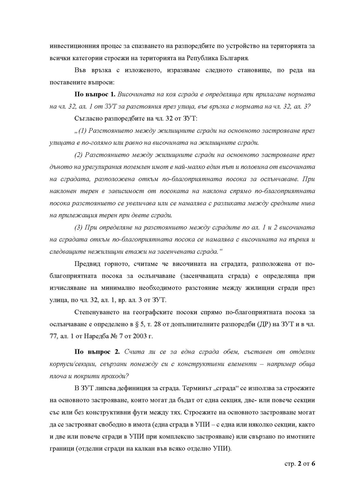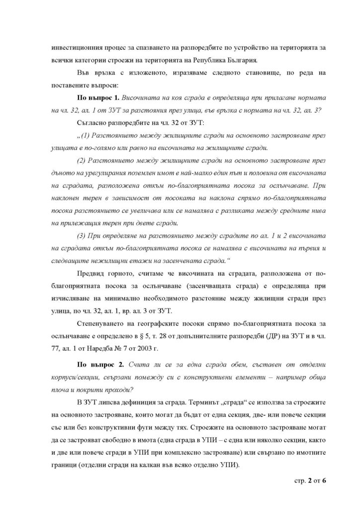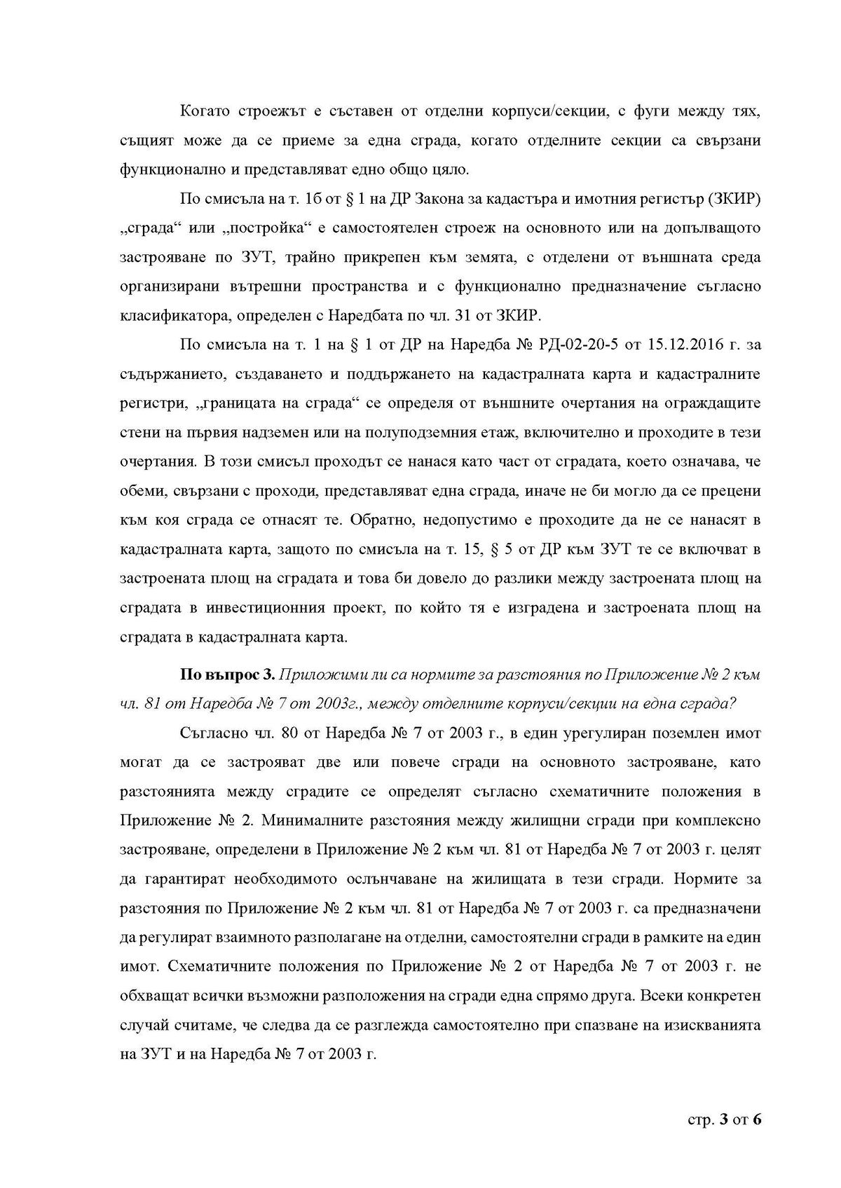 Министерството на регионалното развитие и благоустройството (МРРБ) издаде становище относно прилагането на норми от Закона за устройство на територията, Закона за устройството и застрояването на Столичната община и Наредба № 7 от 22 декември 2003 г. за правила и нормативи за устройство на отделните видове територии и устройствени зони.