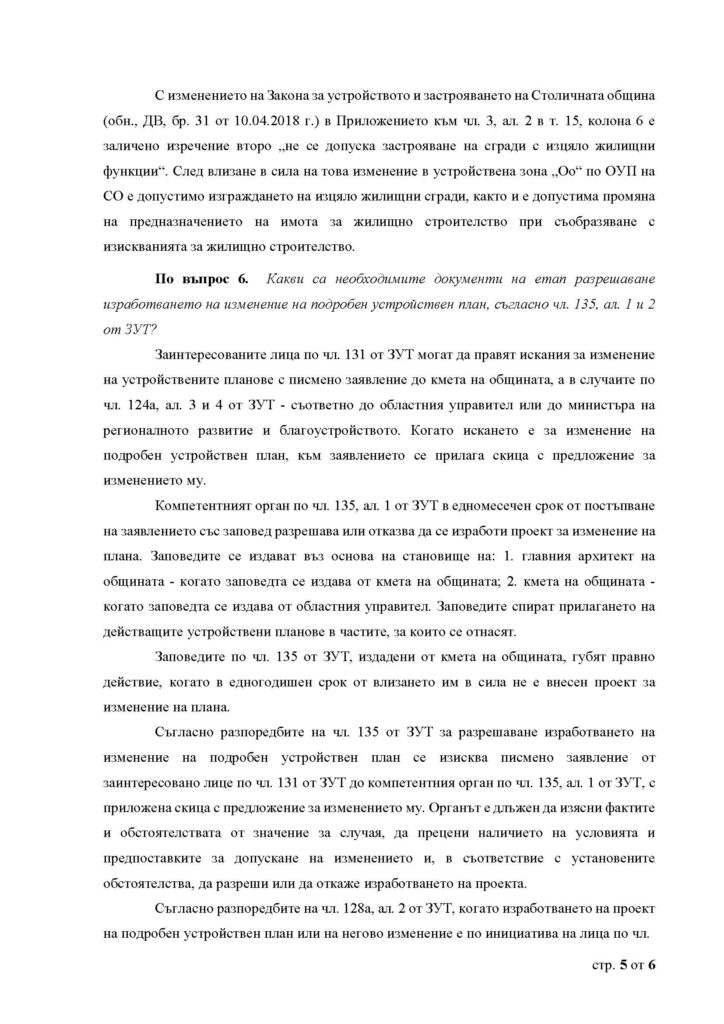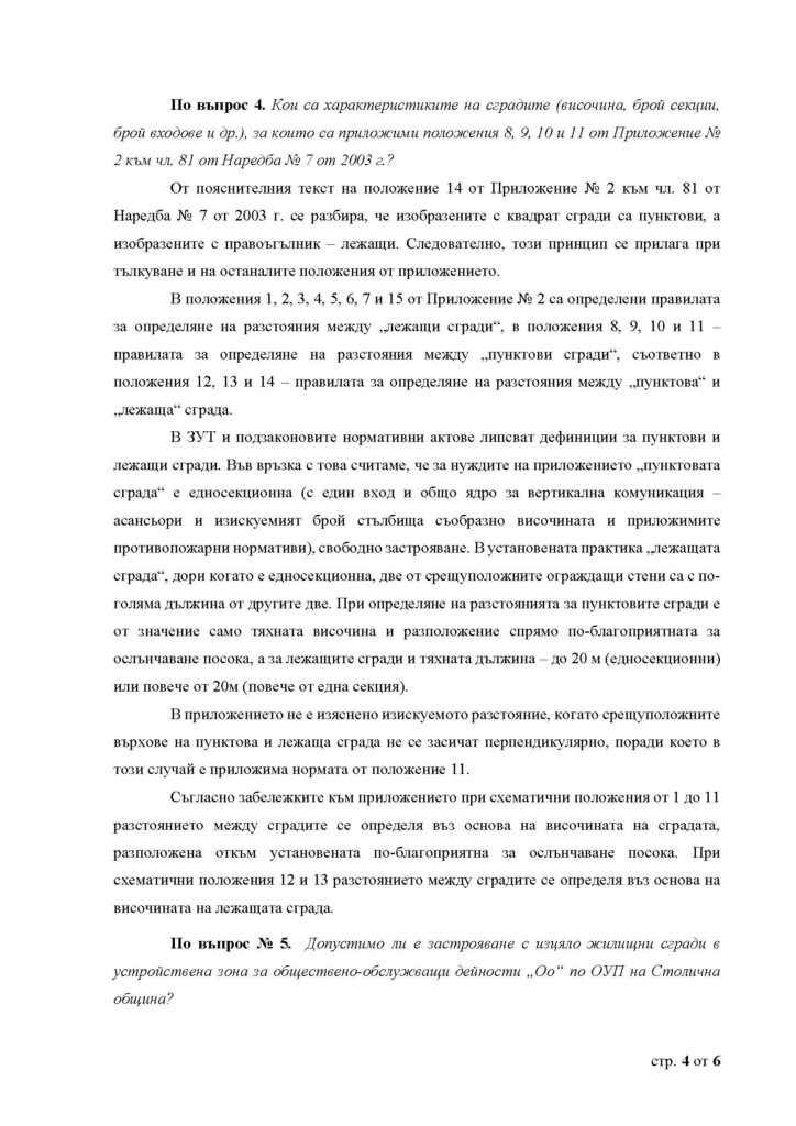5. Допустимо ли е застрояване с изцяло жилищни сгради в устройствена зона за обществено-обслужващи дейности „Оо“ по ОУП на Столична община?